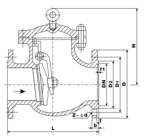 H44H/W旋啟式止回閥主要連接與外形尺寸及重量