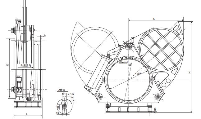 1、本閥由左右閥體、扇形閥板、不銹鋼波紋管、驅動裝置、夾緊裝置等部件組成;