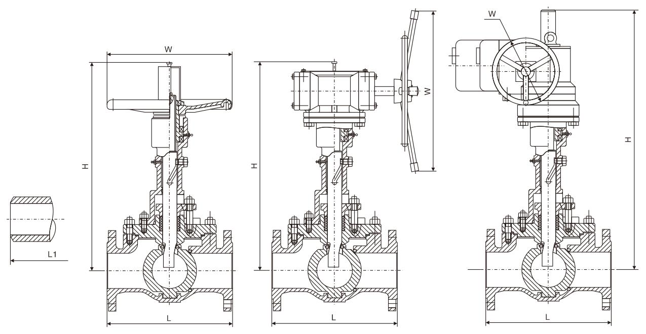 GQ47H軌道球閥主要外形尺寸: